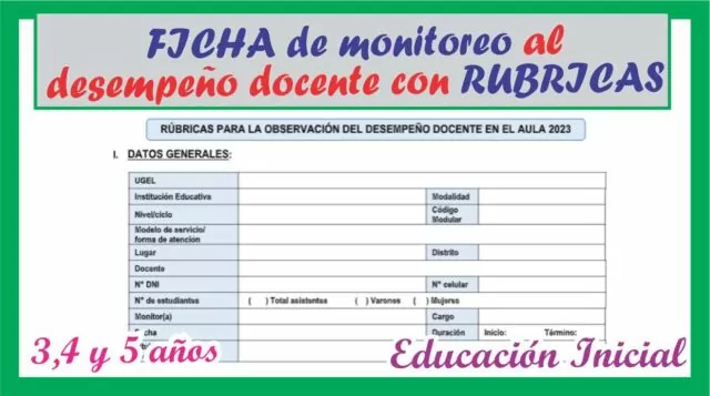 FICHA de Monitoreo al DESEMPEÑO Docente con rubricas para Inicial 2023